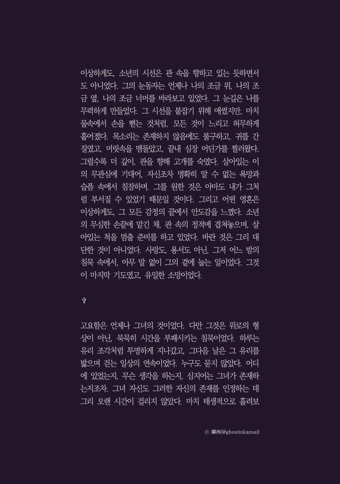 ✞ 이상하게도 그녀는 그 이후로 예전처럼 돌아갈 수 없었다.